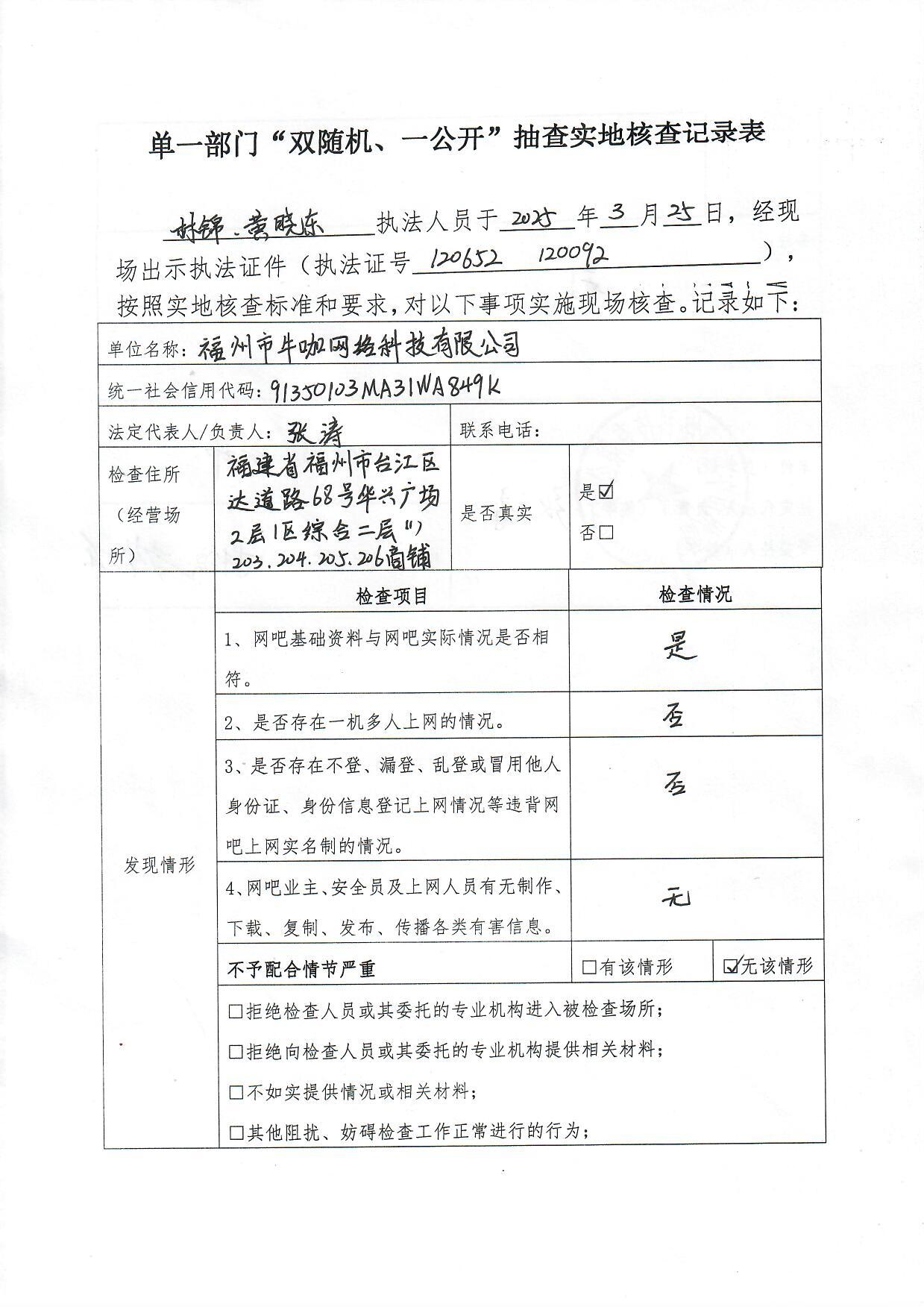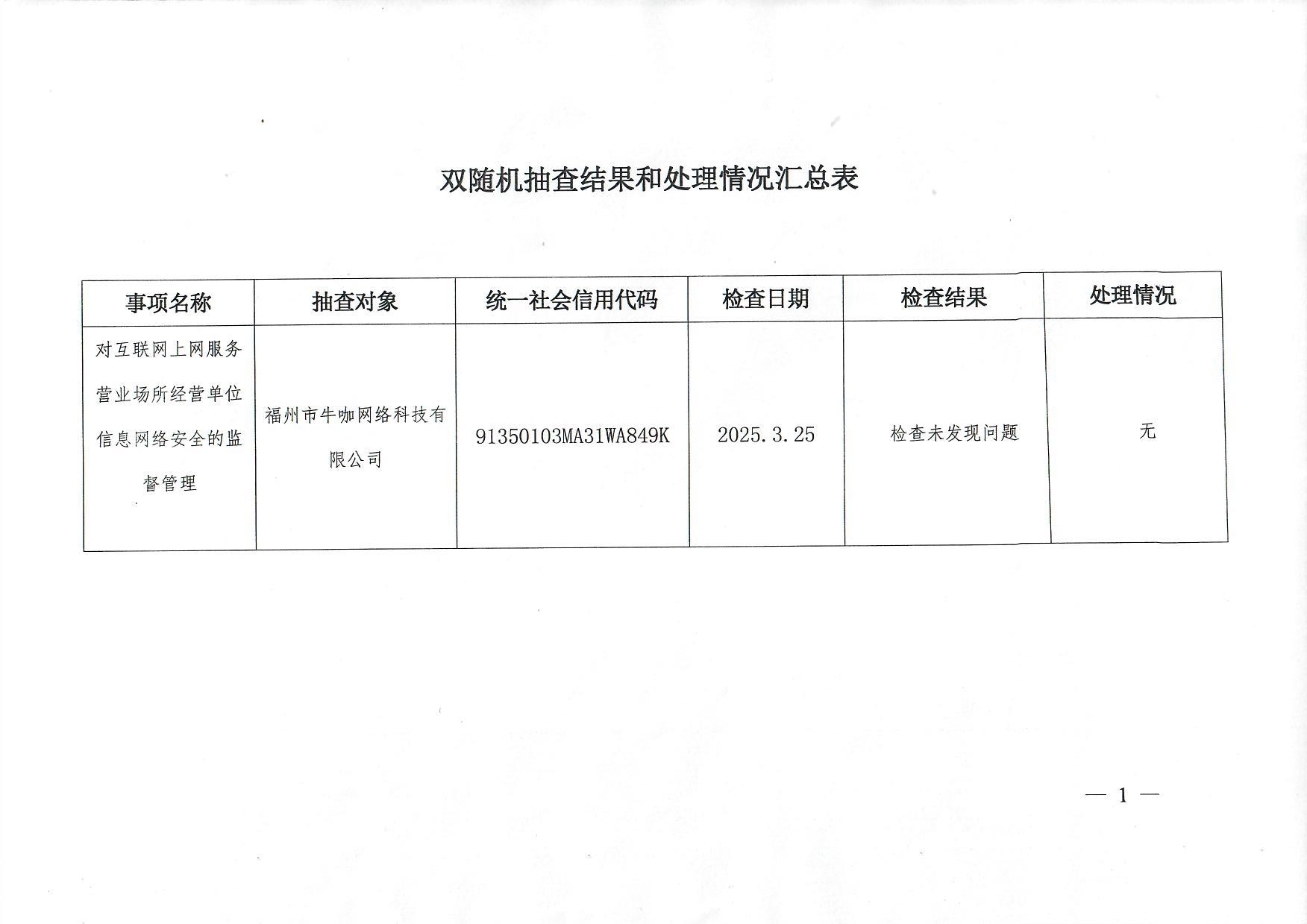 2025年太阳城娱乐 公安分局网安大队网吧"双随机、一公开"抽查结果和处理情况公示(第一轮)